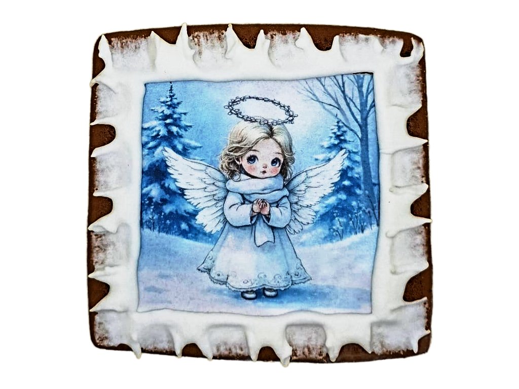 Jemný, křehký a voňavý perník s obrázkem na jedlém papíru.