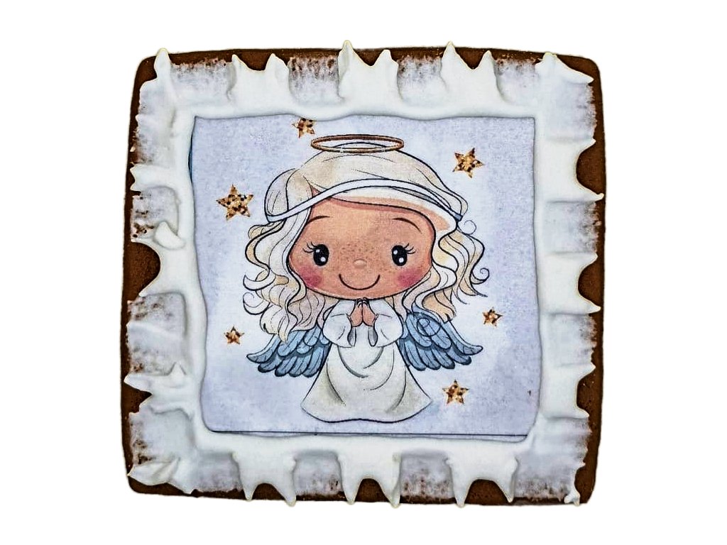 Jemný, křehký a voňavý perník s obrázkem na jedlém papíru.