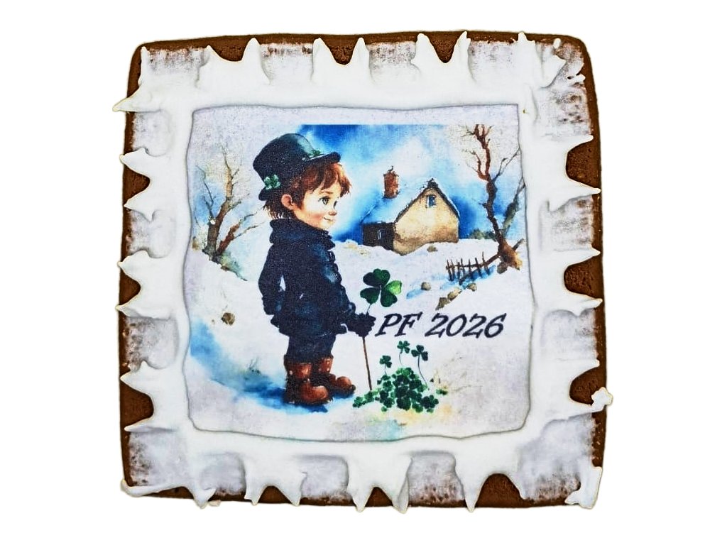 Jemný, křehký a voňavý perník s obrázkem na jedlém papíru.